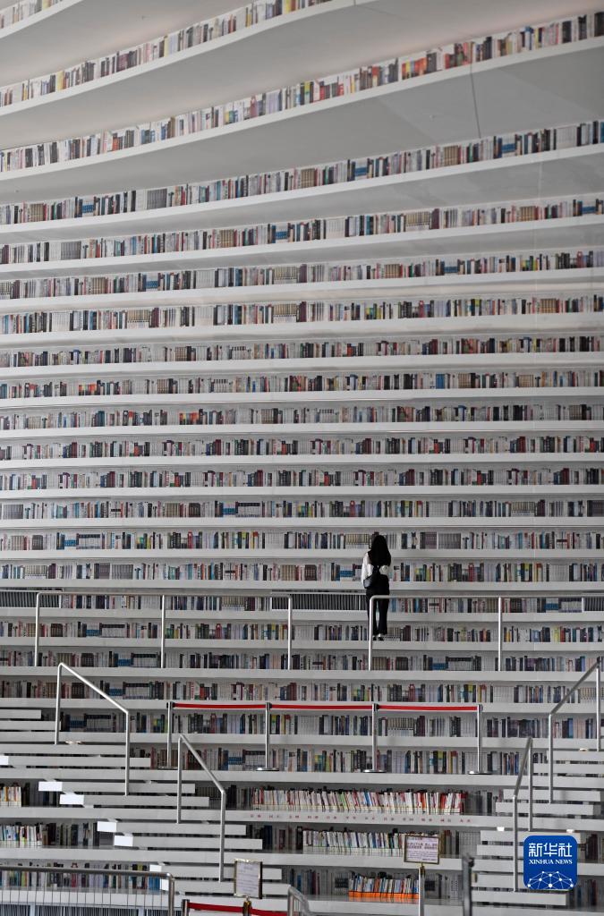 有着“滨海之眼”之称的滨海新区图书馆位于天津滨海文化中心,于2017年10月正式开馆,目前已成为天津滨海新区的文化“新地标”。“滨海之眼”的内里是图书馆中庭,中庭空间形象由“书山”和中间的球体构成。球体是“滨海之眼”的“眼球”,也是一个多功能厅,配置有环绕立体声和数字放映功能;“书山”则由34层阶梯平台构成。