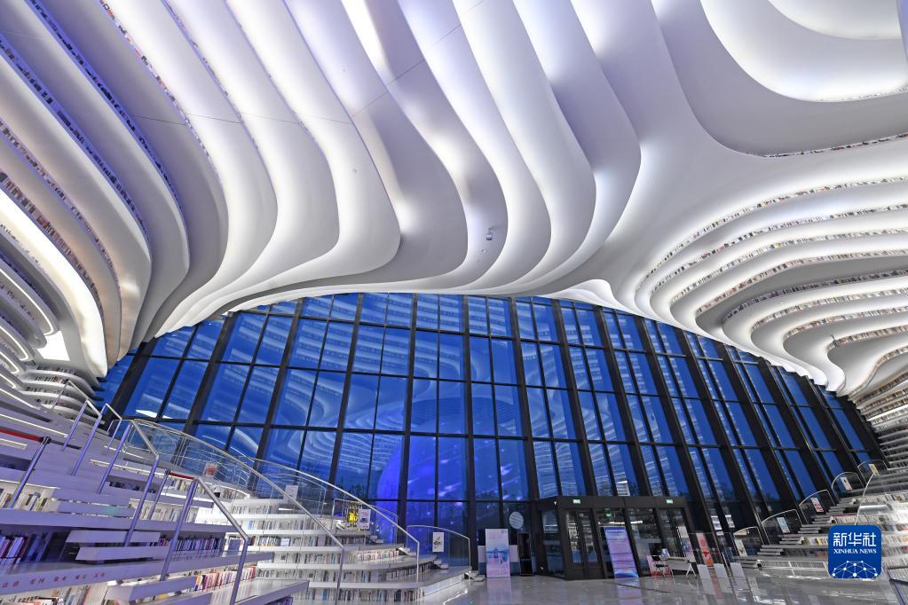 有着“滨海之眼”之称的滨海新区图书馆位于天津滨海文化中心,于2017年10月正式开馆,目前已成为天津滨海新区的文化“新地标”?!氨鹾V邸钡哪诶锸峭际楣葜型?,中庭空间形象由“书山”和中间的球体构成。球体是“滨海之眼”的“眼球”,也是一个多功能厅,配置有环绕立体声和数字放映功能;“书山”则由34层阶梯平台构成。