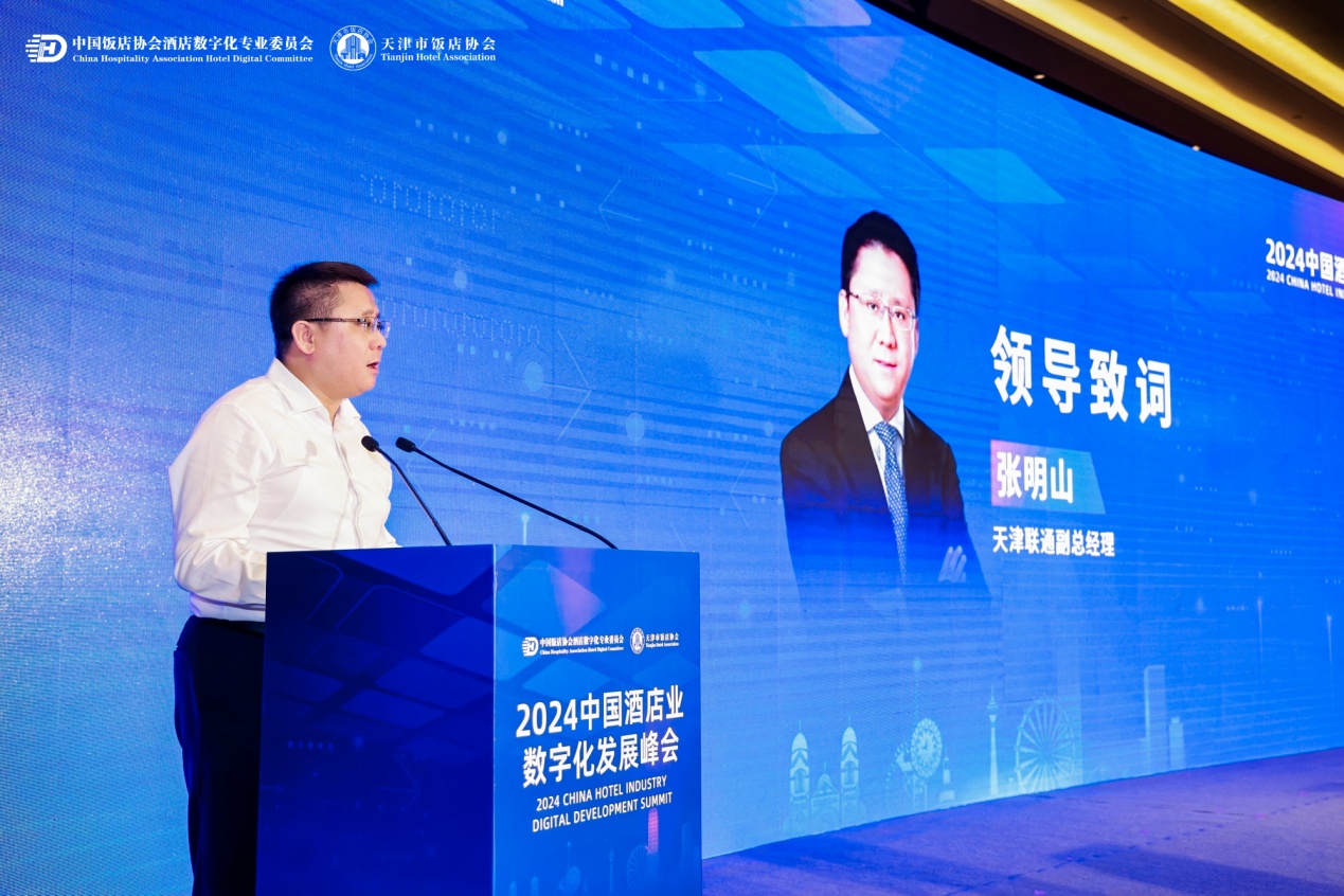 天津市饭店协会会长常德胜、中国饭店协会酒店数字化专业委员会理事长张兴国、天津市商务局领导梁楠、天津联通副总经理张明山等领导出席峰会并致辞。