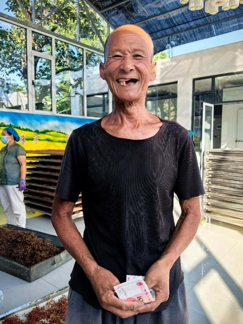 今年70岁的李振常来自天津市蓟州区白涧镇庄果峪村。下午4点,刚把今天新摘的花椒卖到村里伏花椒基地的他,笑得合不拢嘴。